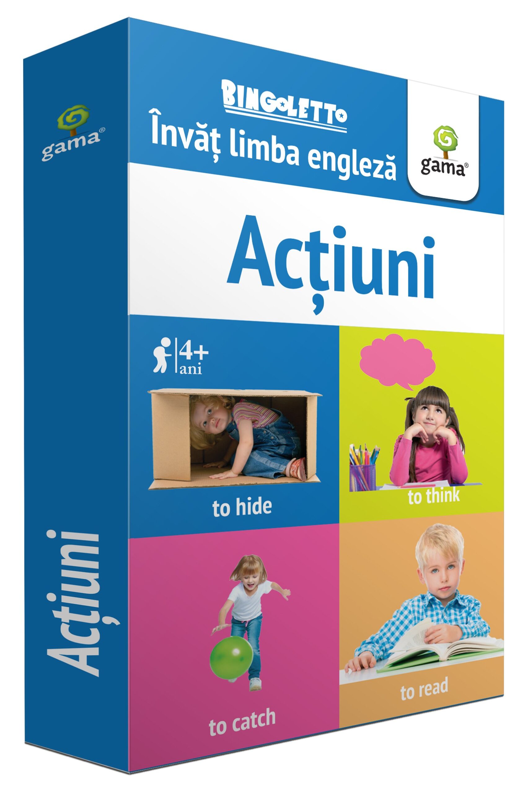 Bingoletto. Acțiuni reprezintă un sistem inedit de a învăța limba engleză, inspirat de popularul joc de bingo. Cu ajutorul acestei metode, copilul va învăța cu ușurință denumirile unor gesturi și acțiuni cotidiene, îmbogățindu-și astfel vocabularul.