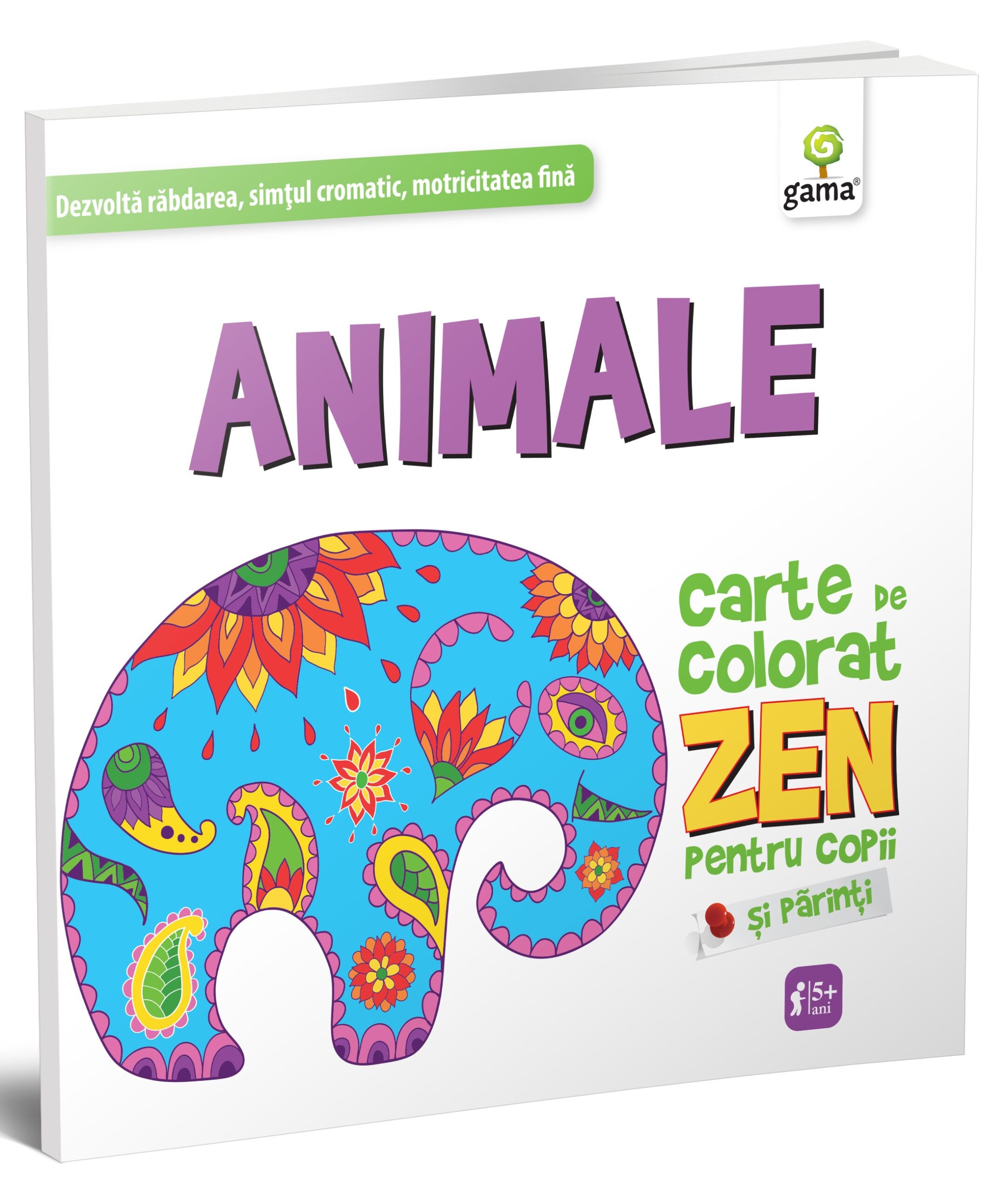 „Animale. Carte de colorat ZEN” pentru copii foloseşte animalele stilizate şi simetria liniilor pentru a provoca imaginaţia copiilor şi a le stimula creativitatea şi simţul cromatic.