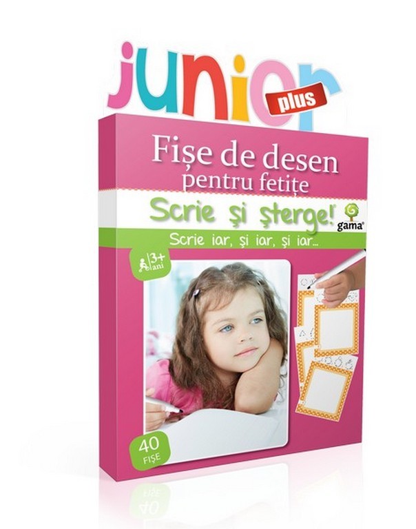 <h3>CONȚINUT SCRIE ȘI ȘTERGE! JUNIOR PLUS • FIȘE DE DESEN PENTRU FETIȚE:</h3>