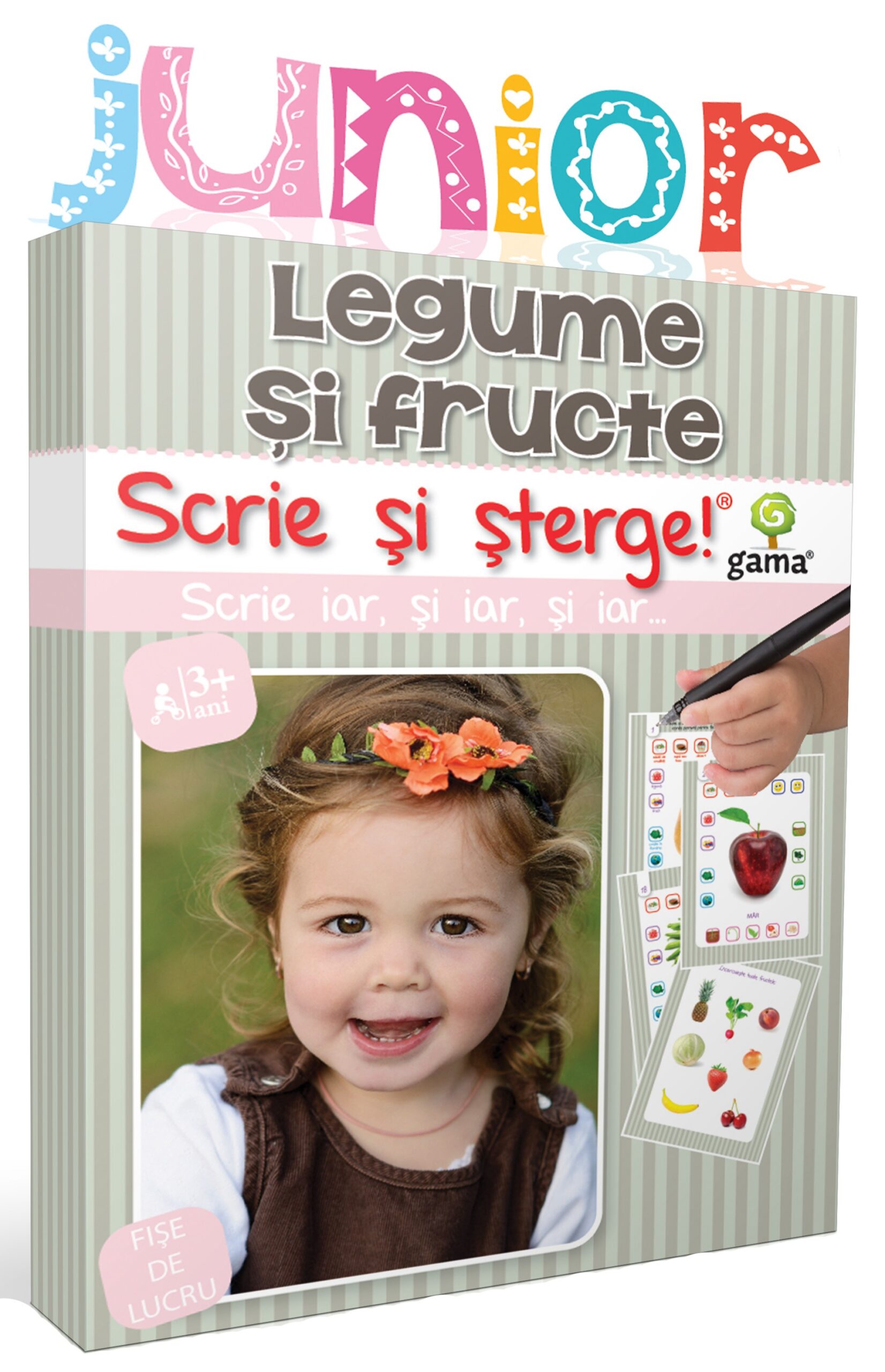 <h3>CONȚINUT SCRIE ȘI ȘTERGE! JUNIOR • LEGUME ȘI FRUCTE:</h3>
