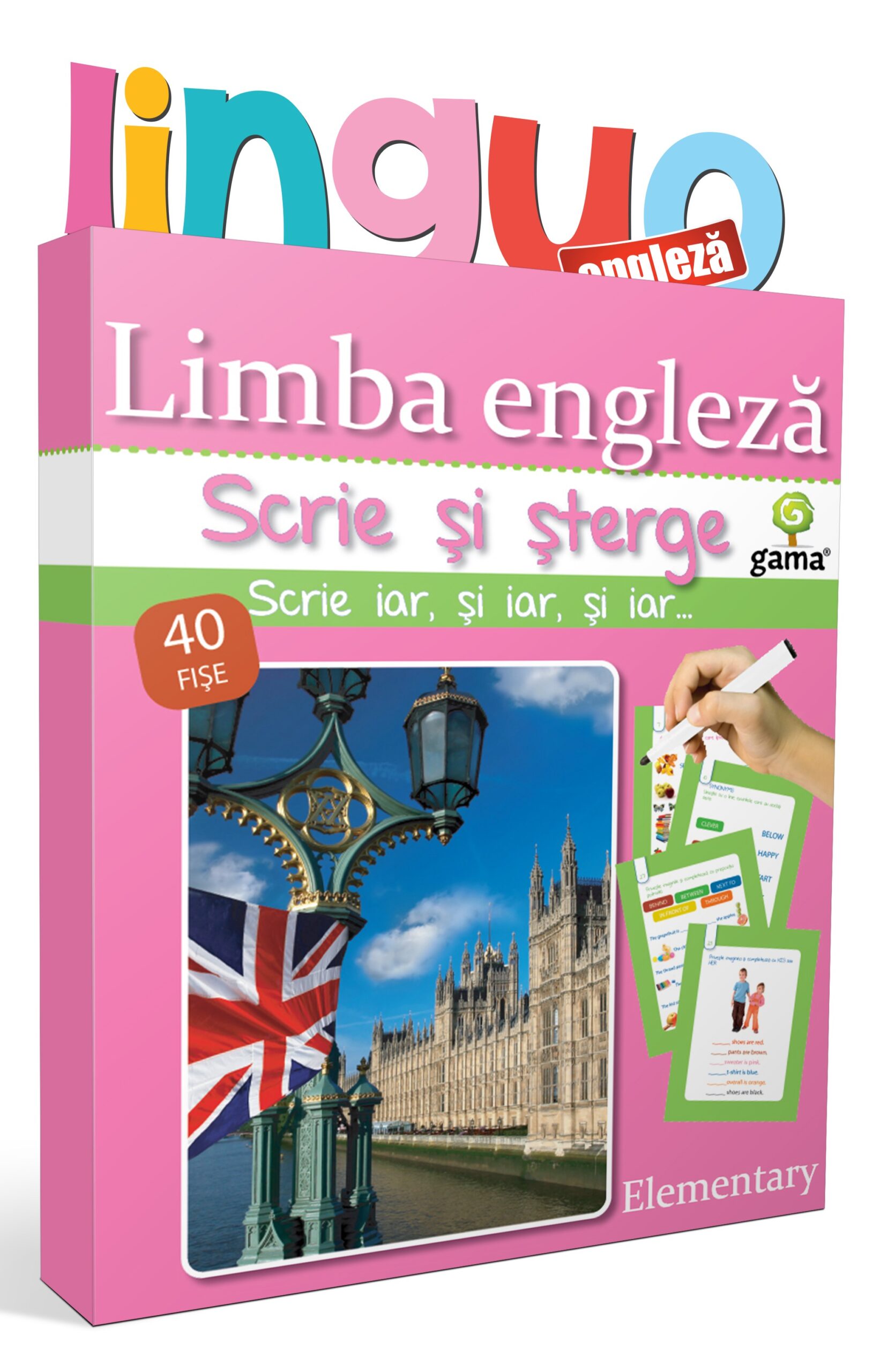 Seria Scrie și șterge! Linguo reprezintă instrumentul perfect de învățare a limbilor străine. Exercițiile propuse pot fi refăcute de nenumărate ori, cu ajutorul cariocii și al fișelor de lucru plastifiate. Activitățile sunt variate și presupun completarea spațiilor punctate, stabilirea pluralului anumitor substantive, încercuirea cuvintelor corecte etc. Cu ajutorul acestor fișe copilul va învăța limba engleză, îmbunățindu-și capacitatea de concentrare, atenția și memoria. Pachetul face parte din colecția „Scrie și Șterge! Linguo” și este recomandat copiilor de 8-10 ani.