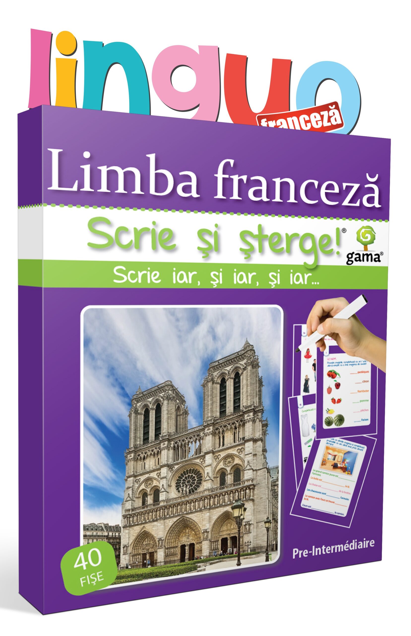 Cardurile Scrie și Șterge – nivelul pre-intermediar – sunt destinate copiilor care doresc să aprofundeze noțiuni mai complexe ale gramaticii limbii franceze.