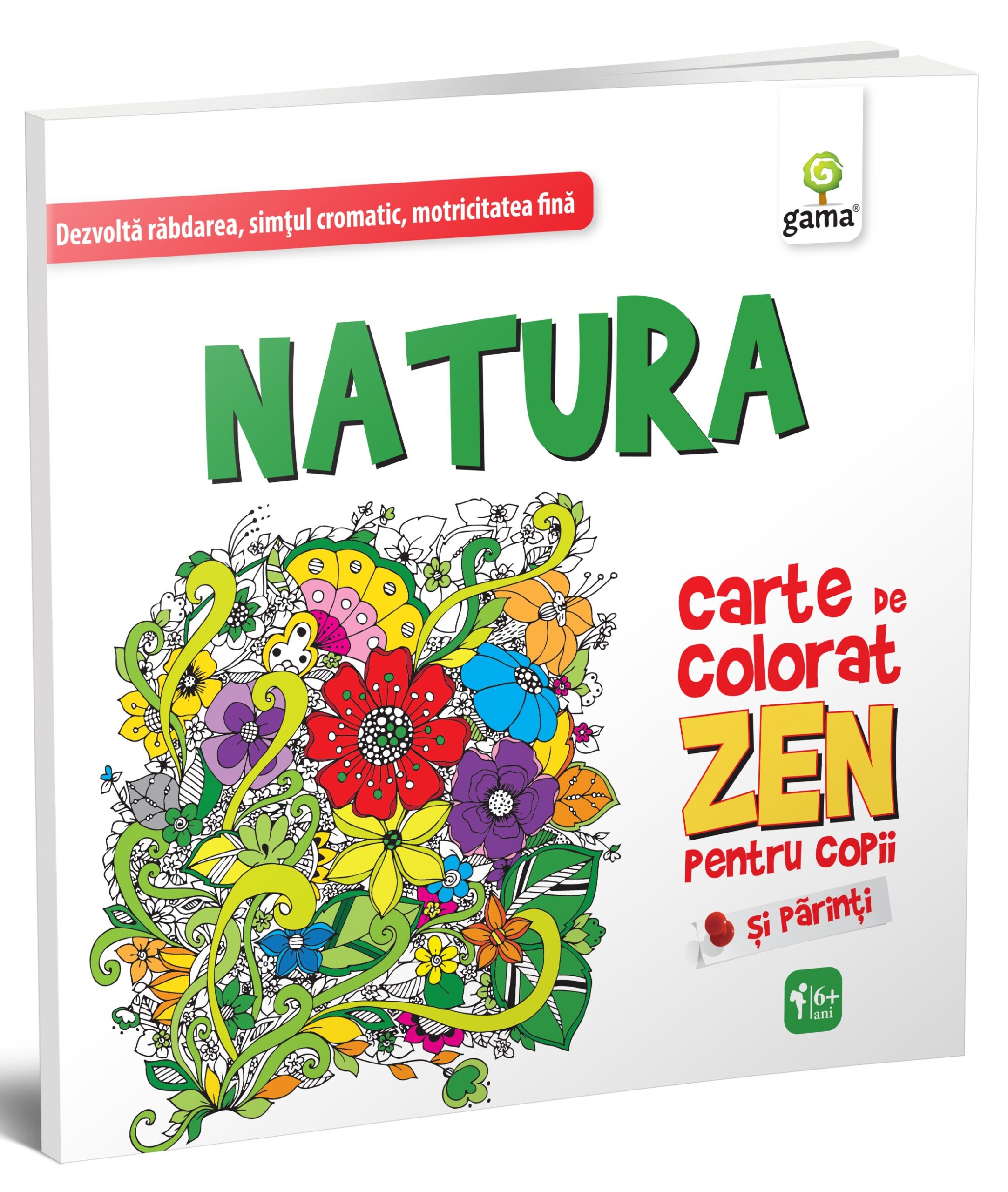 „Natura. Carte de colorat ZEN” pentru copii folosește animalele stilizate și simetria liniilor pentru a provoca imaginația copiilor și a le stimula creativitatea și simțul cromatic.