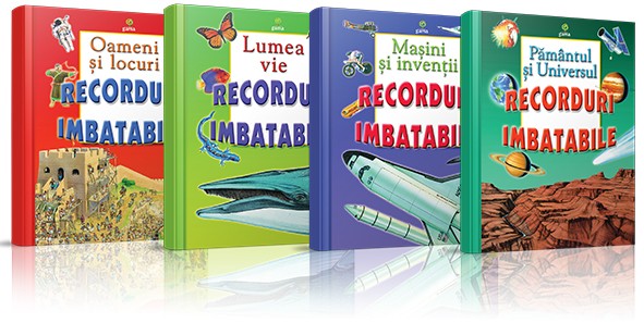 Colecția „Recorduri imbatabile” conține enciclopedii fascinante, ce dezvăluie copilului informații interesante despre Pamânt şi Univers, despre animale şi plante, despre oameni speciali şi locuri unice, despre maşinării uimitoare şi invenţii ingenioase.