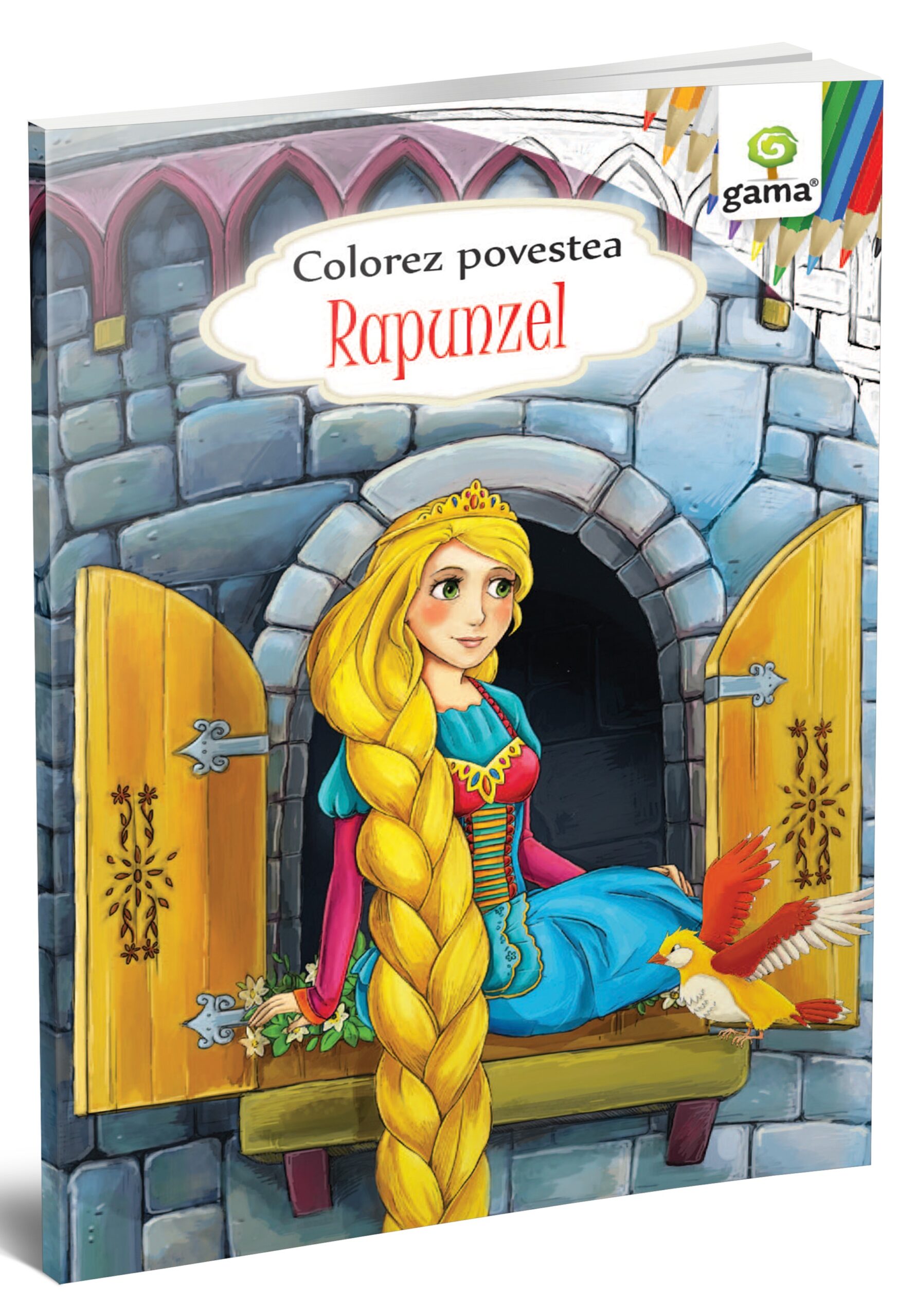 Tainele misterioasei prințese din turn, Rapunzel, se dezvăluie într-o nouă carte de colorat cu poveste. Fiecare pagină de colorat este însoțită de una identică, gata colorată, ce poate fi folosită drept model. Desenele sunt simple, cu linii clare și groase, pentru a ușura efortul de a respecta conturul.