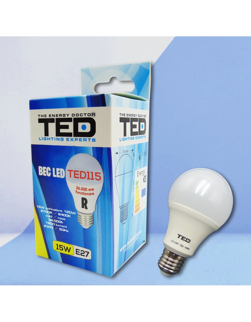 Bec LED E27 230V 15W 2700K A60 1600lm TED115C