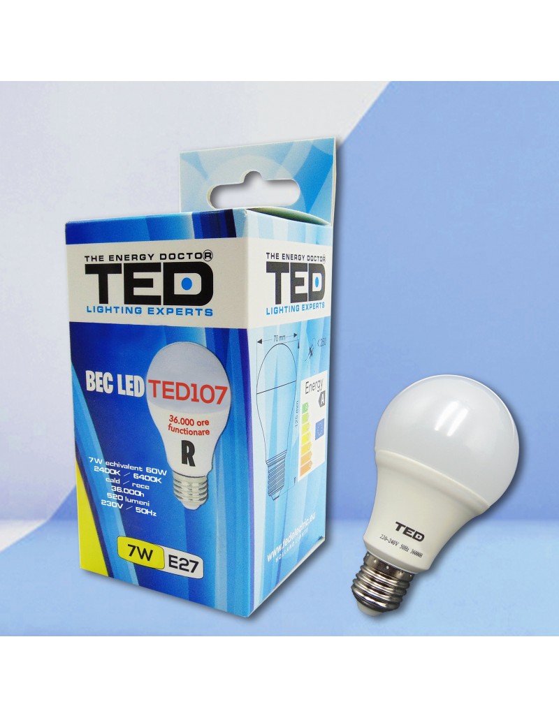 Bec LED E27 230V 7W 2700K A60 530lm TED107C