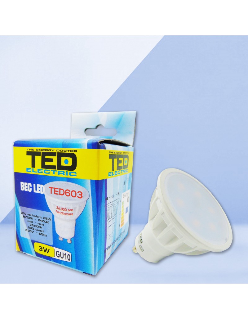 Bec LED GU10 230V 3W 6400K 260lm TED603R