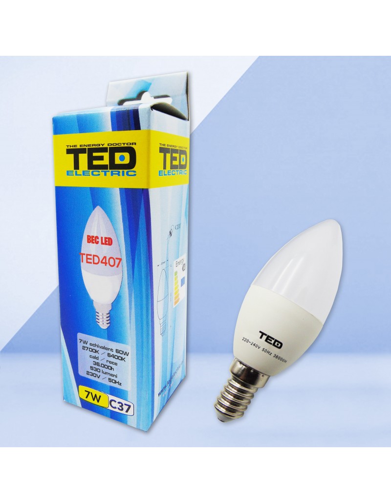 Bec LED lumanare E14 230V 7W 6400K C37 530lm TED407R
