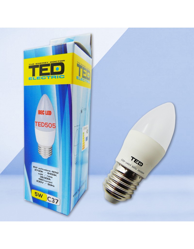 Bec LED lumanare E27 230V 5W 2700K C37 460lm TED505C