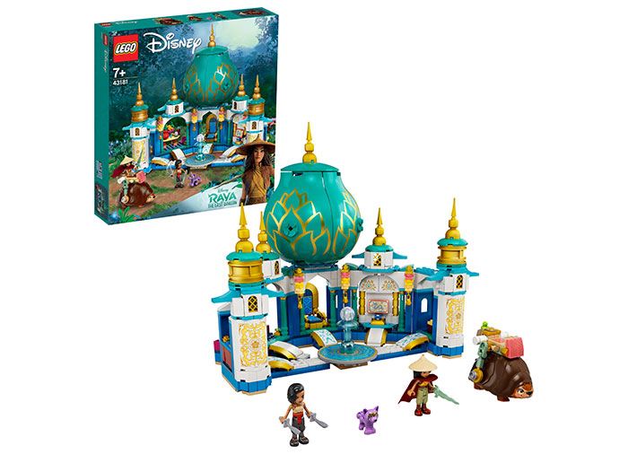 � Acest set, bazat pe noul film Disney Raya ?i Ultimul Dragon, include un palat cu 6 camere ?i turnuri, mini-p?pu?i Raya ?i Namaari plus Tuk Tuk ?i figurina LEGO Serlot a lui Namaari.