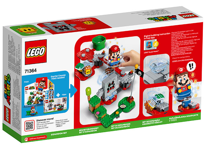 Adauga o noua provocare la Cursa ta pentru incepatori LEGO Super Mario cu Setul de extindere Pericolul Lavei lui Whomp! Ai grija sa nu cazi de pe platforma glisanta in lava fierbinte. Doboara-l pe Whomp care pazeste comutatorul P iar apoi poti castiga un suvoi de monede pentru alergare, sarituri si cascadorii cu LEGO Mario (figurina nu este inclusa). Dar fereste-te de Bula de lava – vei avea nevoie de Scoica verde pentru a o dobori!
