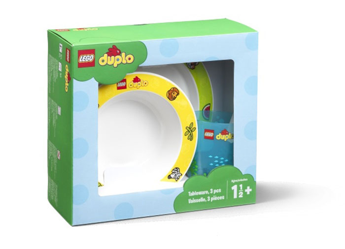 Pune pe mas? vesela LEGO DUPLO care include o can?, o farfurie plat? ?i o farfurie ad�nc? pentru a aduce culoare ?i distracie la fiecare mic dejun, pr�nz sau cin?.